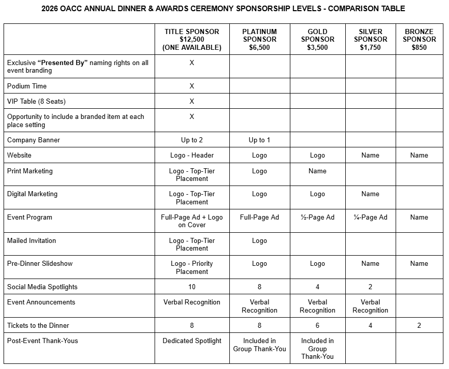 Businesses that commit to a sponsorship for the 2026 Annual Dinner & Awards Ceremony by January 15, 2026 are eligible for a 10% Early Bird Discount. Enter the discount code EARLYBIRD2026 at checkout to receive the reduced rate. Early commitments also ensure priority placement and availability in limited sponsorship tiers.